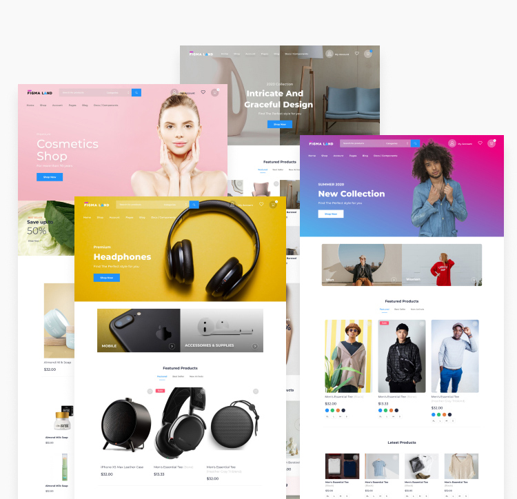 Find + 500 unique UI cards and limitless design combinations to build a complete website for eCommerce , mobile app, saas, creative solutions, and many other business areas.